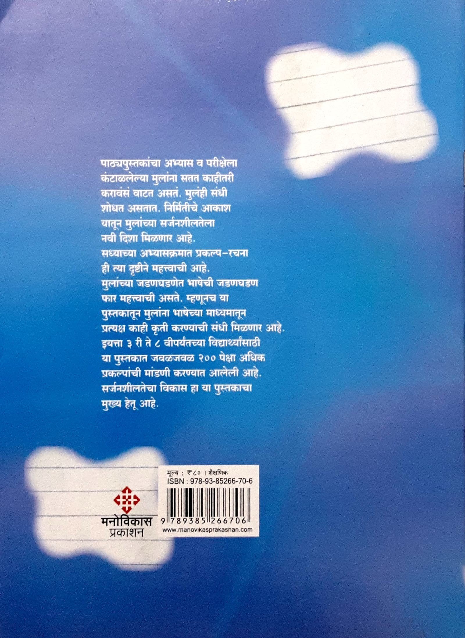 Previous Product Next Product निर्मितीचं आकाश₹80.00लेखक: रेणु दांडेकर पाने: 64 SIZE: 7″ X 9.5″1 in stock निर्मितीचं आकाश quantity Add to cart Categories: AGE 10 to14, AGE 14 AND ABOVE, मराठी पुस्तके Reviews (0) ReviewsThere are no reviews yet. Be the first to review “निर्मितीचं आकाश” Cancel replyYour email address will not be published. Required fields are marked *Your rating *Rate…PerfectGoodAverageNot that badVery poor Your review *Name *Email * Save my name, email, and website in this browser for the next time I comment. Related products Quick View Quick Viewआपली सूर्यमाला ₹180.00Add to cart Quick View Quick Viewपंचतंत्र-मधुबनी शैलीतील चित्रांसह-1 ₹60.00Add to cart Quick View Quick Viewअणू आणि रेणु ₹90.00Add to cart